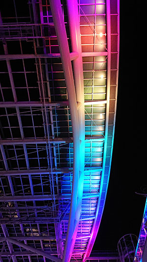芸術劇場から外に出ると、となりのオアシスがレインボーカラーに彩られてました。